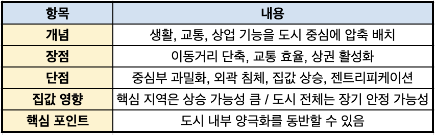 콤팩트시티는 집값 상승과 시장 안정화 가능성을 동시에 지니고 있습니다.